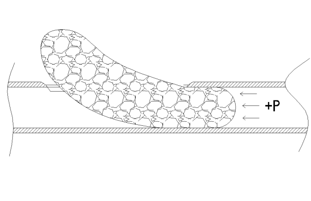 5、旋转内针,使得内、外针相对旋转移动形成剪切,取样(图6)。