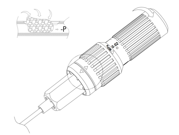 4、根据操作需要,逆时针旋转内针的一体式旋切调压手柄,建立针腔内负压(图5)。